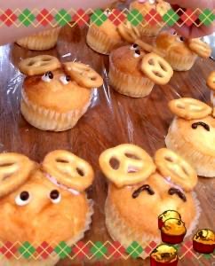 ついでに、プチマフィン🥧に少し手を加えてトナカイ🫎仕様にしている最中と、🍫お菓子の家🏠をパシャリ。